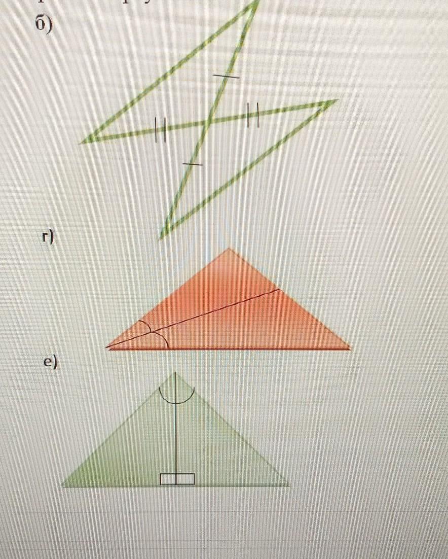 Равные треугольники изображены на первом и втором рисинке (б, е).