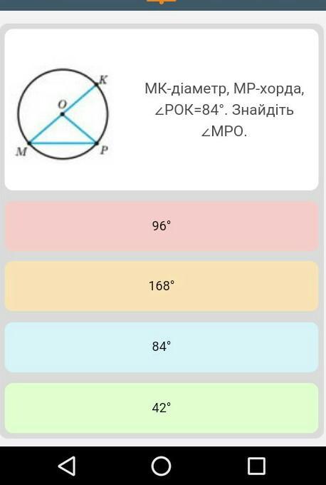 ∠POK=∠MPO+∠PMO=84°(по свойству внешнего угла)