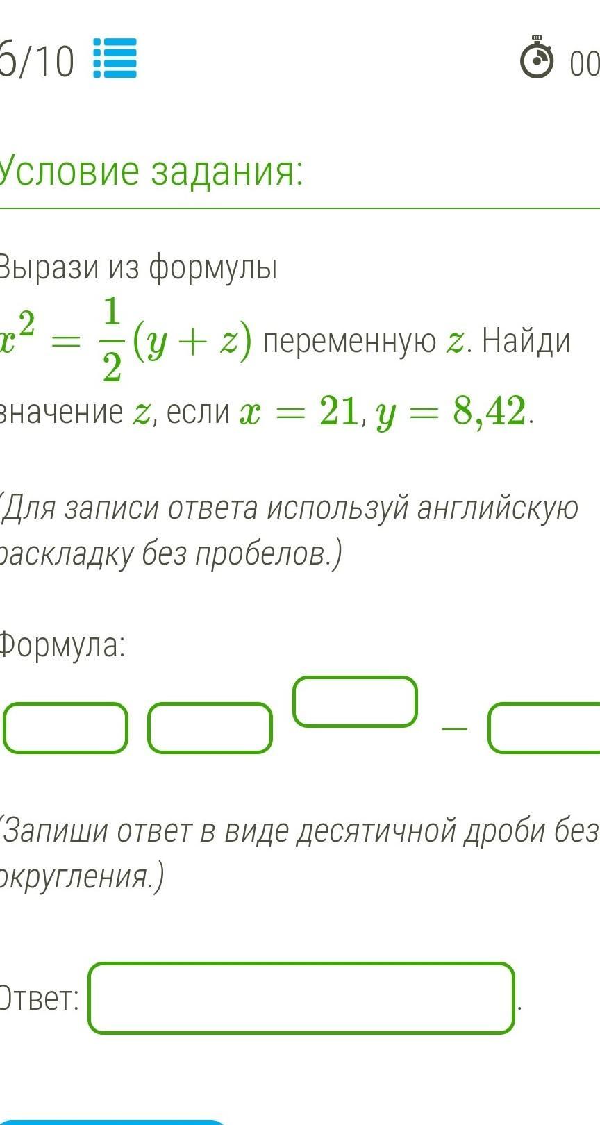 х^2 = 1/2 × ( у + z )