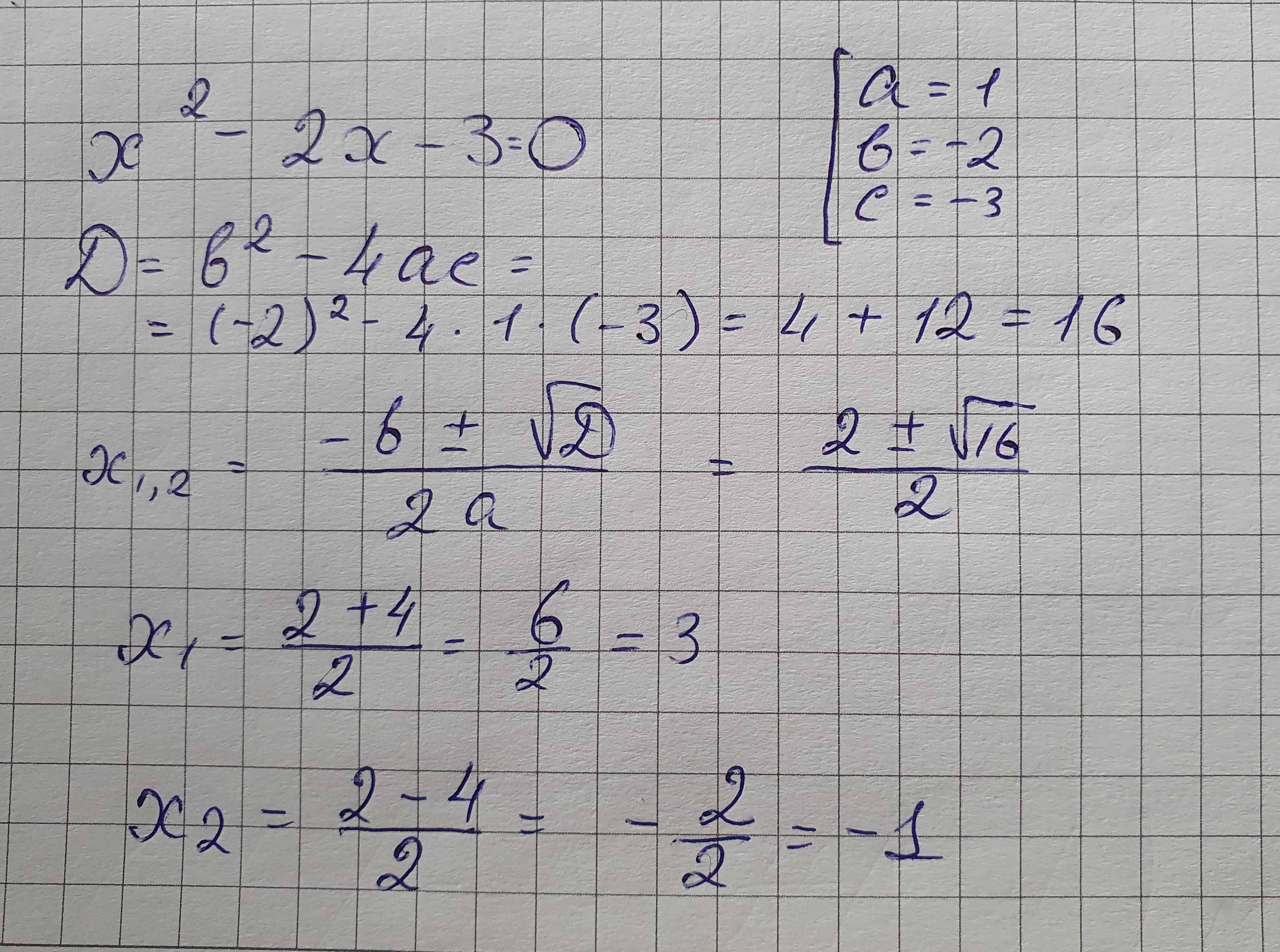 D=(-2)^2-4*1*(-3)=4+12=√16=4
