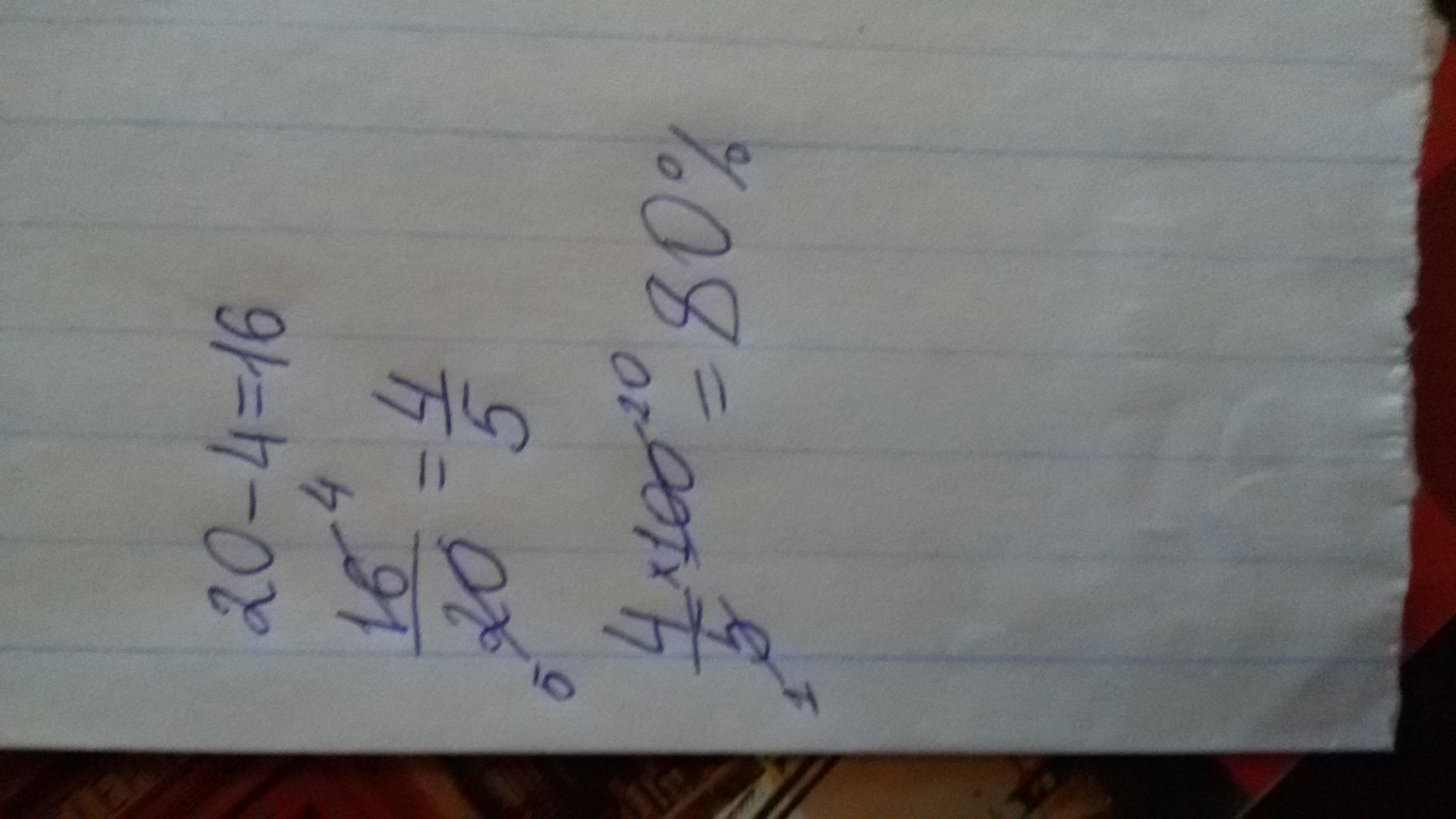 (Розвяжи задачу) у класі було 20 учнів,і 4 відсутні скільки відсотків учнів залишилось?