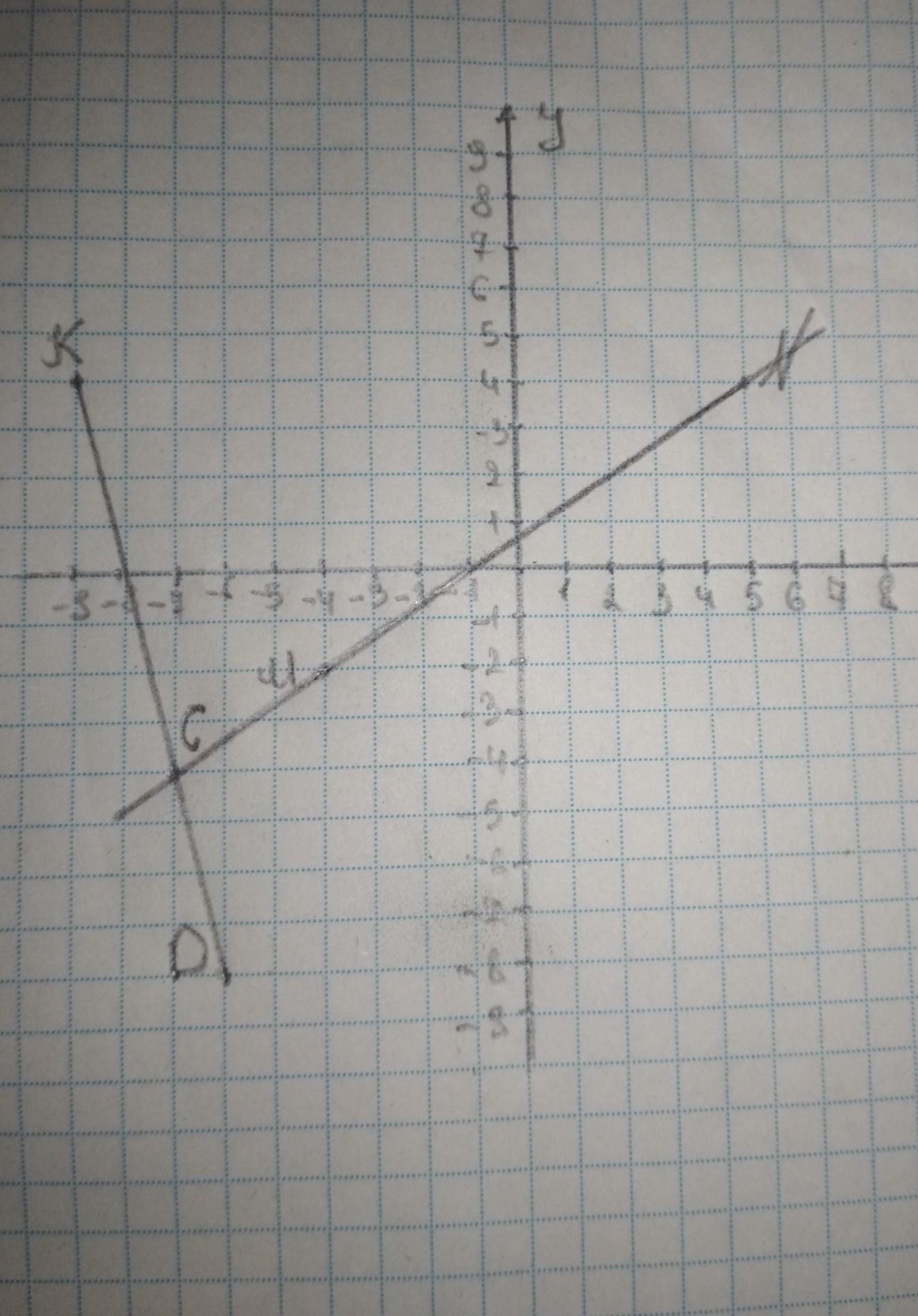 На координатной плоскости проведите прямую MN через точки M (-4; -2) и N (5;4) и отрезок KD, соединяющий точки K (-9; 4) и D (-6; -8). Пришлите рисунок( вложение ).