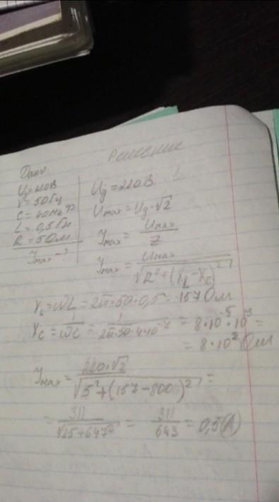 в сеть с напряжением 220 в и частотой 50 гц конденсатор емкостью 40 мкф. определите сопротивление конденсатора и величину тока через него