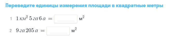 2)9 га 205 а= 9·10000 м²+205·100 м²= 90000 м²+20500 м²= 110500 м²