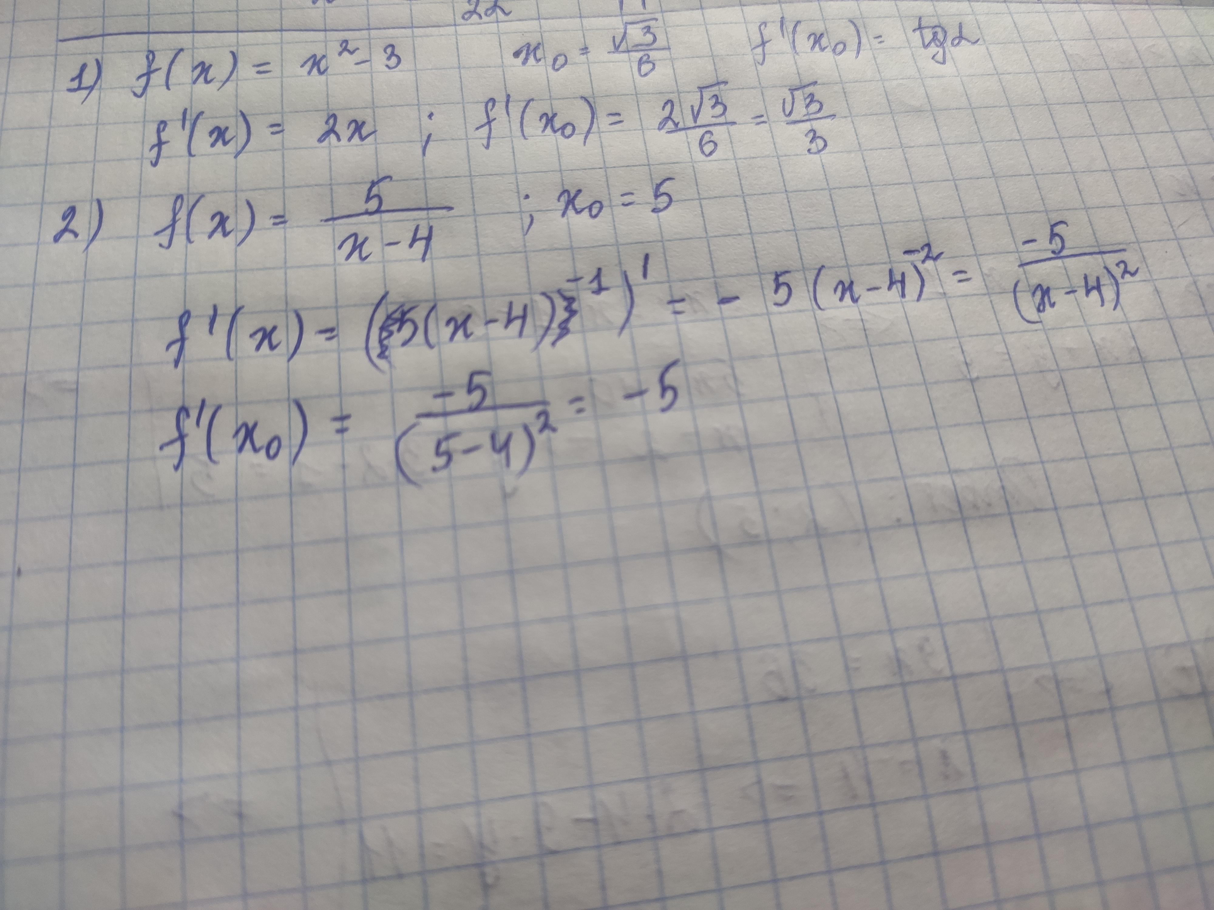 Угол в первом arctg√3/3=30°, а во втором arctg(-5)=π-arctg5