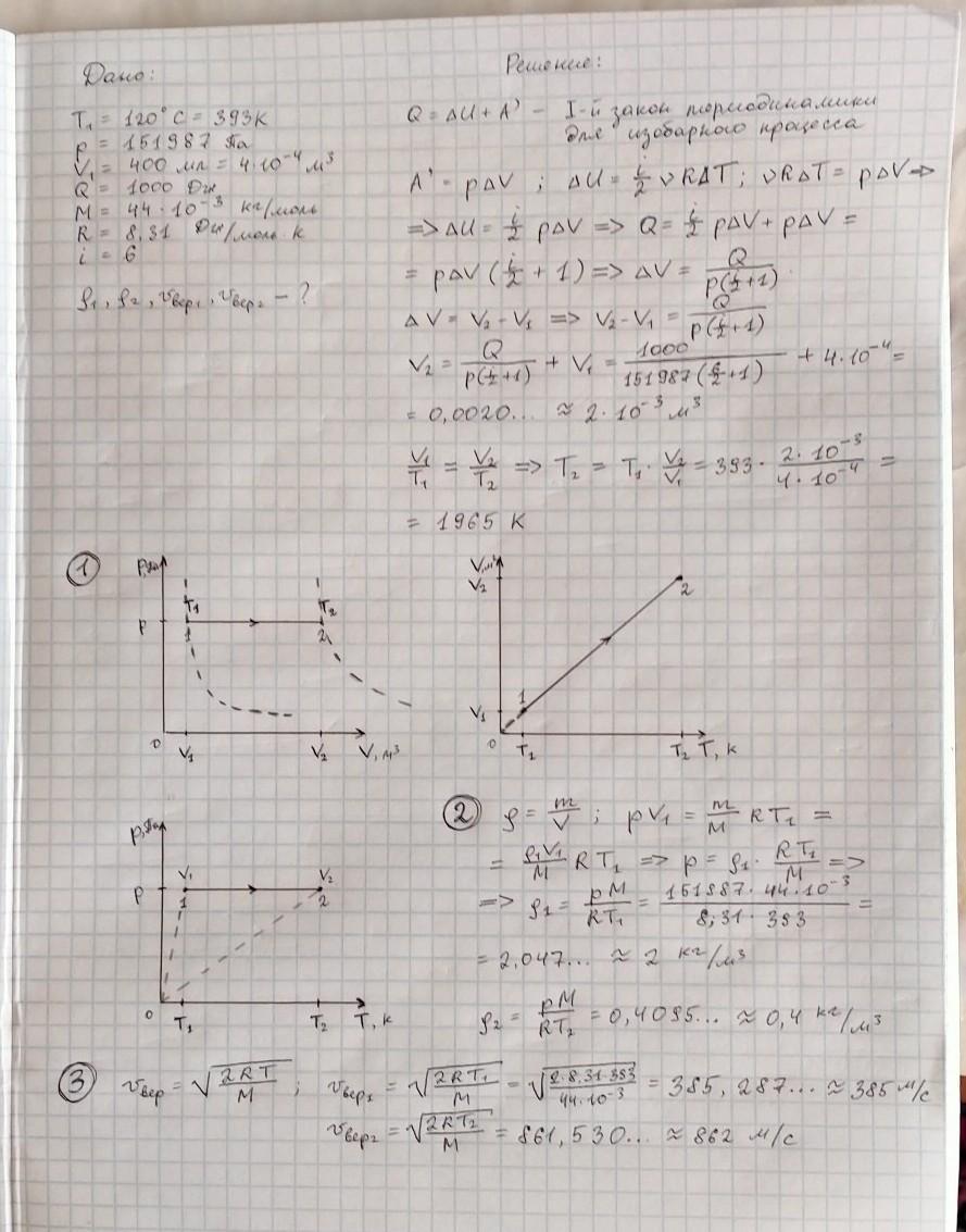 В цилиндр под поршнем находится углекислый газ. Начальная температура 120°C, давление 151987 Па. объём 400 мл.