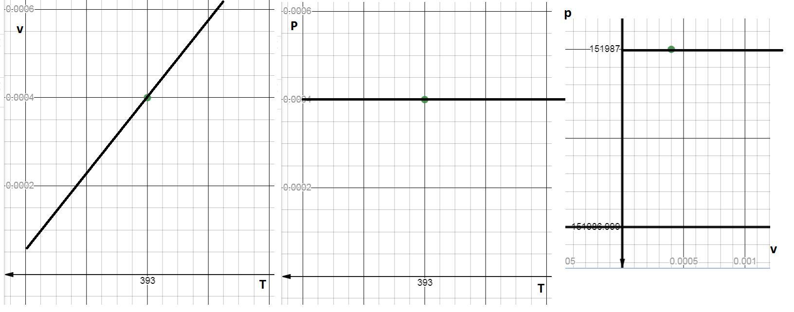 Насчёт графиков в условиях - на них отмечено только одно - начальное - состояние. Да и график VT вызывает сомнения: при абсолютном нуле наступает "тепловая смерть", т.е. прекращается всякое движение, а раз нет движения молекул, то нет и их ударов в стенки сосуда, т.е. давления газа. Да и при низких температурах газ переходит в жидкость, т.е. его объём меняется. Поэтому изобара на графике VT должна проходить через ноль.