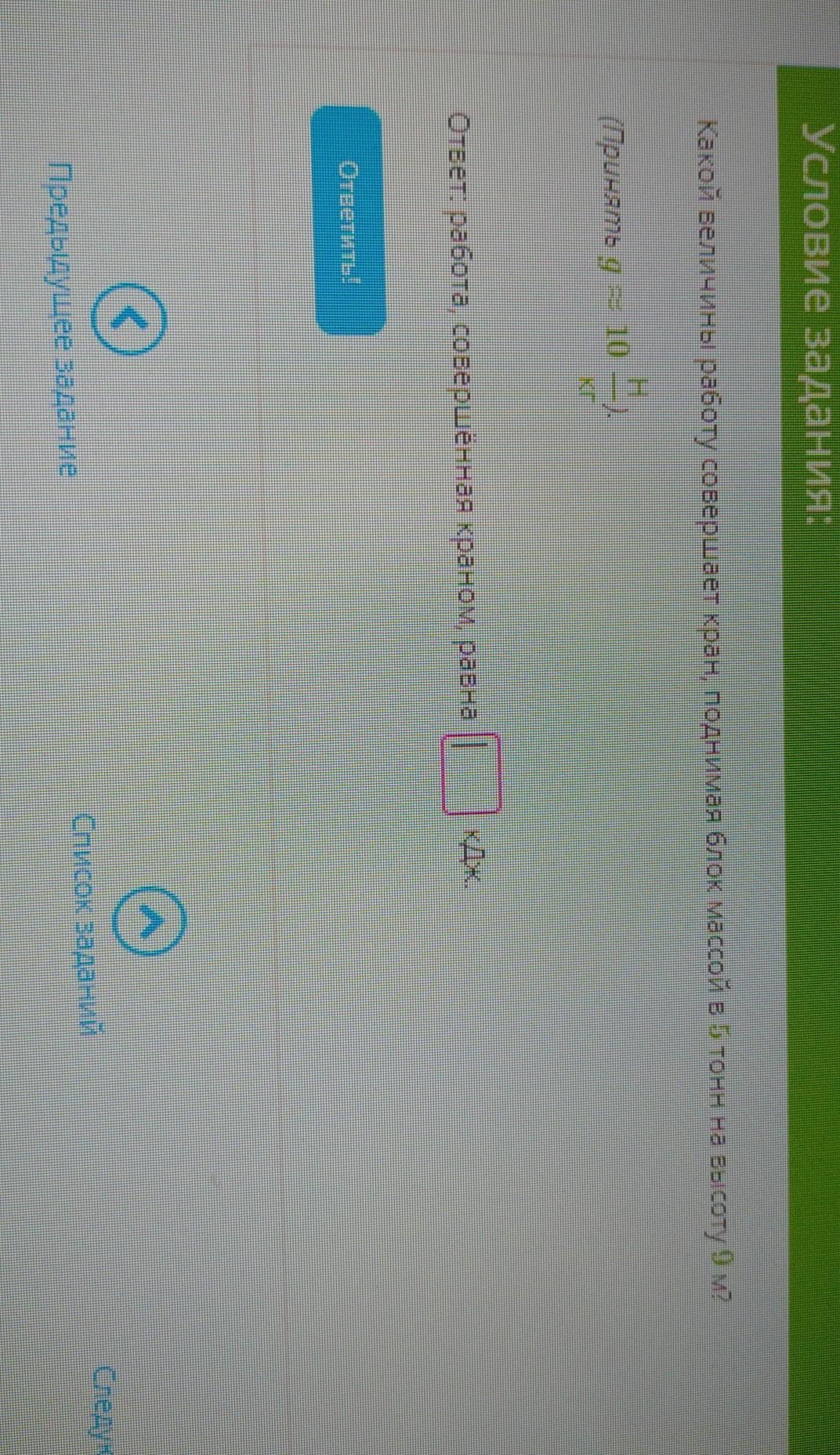 А=mqh=5000*10*9=450 000Дж=450кДж