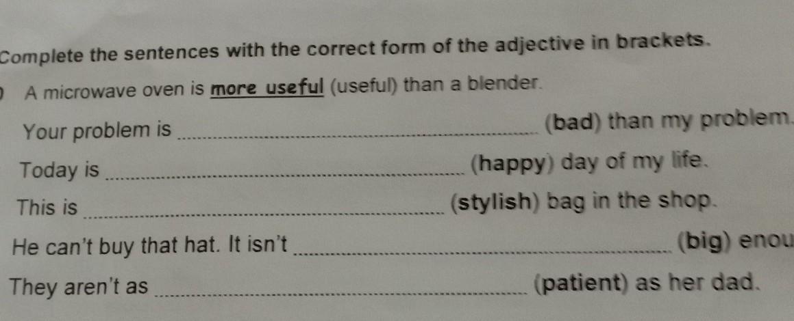 5 Complete the sentences with the correct form of the adjective in brackets.