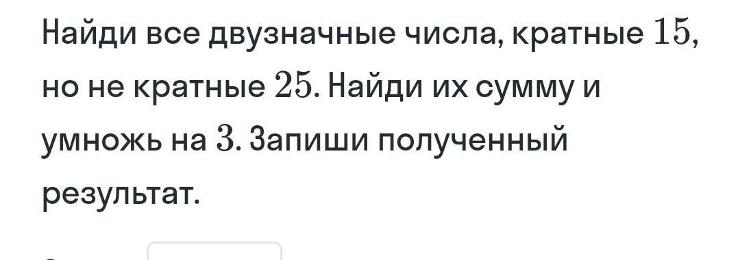 Числа кратные 15, но не кратные 25: 15, 30, 45, 60, 90.