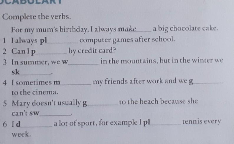 Я много занимаюсь спортом, например, каждую неделю играю в теннис.