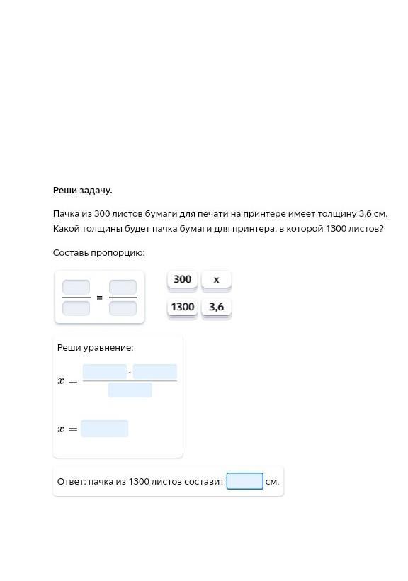 Ответ: пачка из 1300 листов составляет 15,6 см