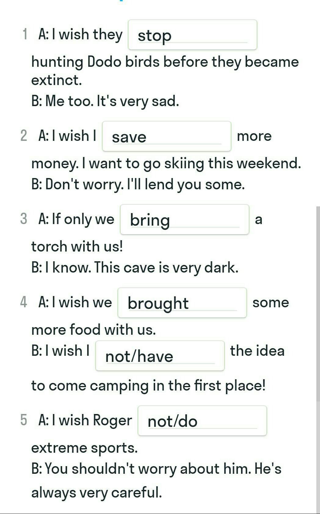 Ответ:1.stopped 2.saved 3.brought 4.brought 5.haven’t had 6.haven’t done