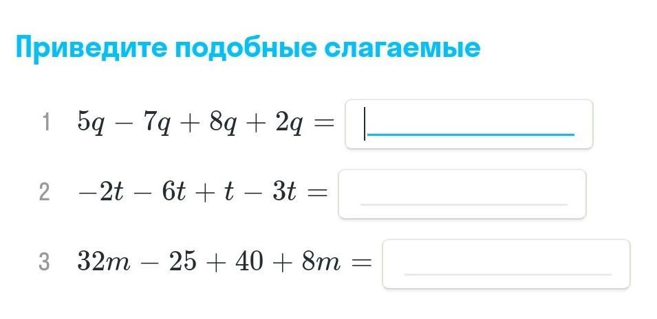 1)8q 2) -10t 3) 40m-15.....