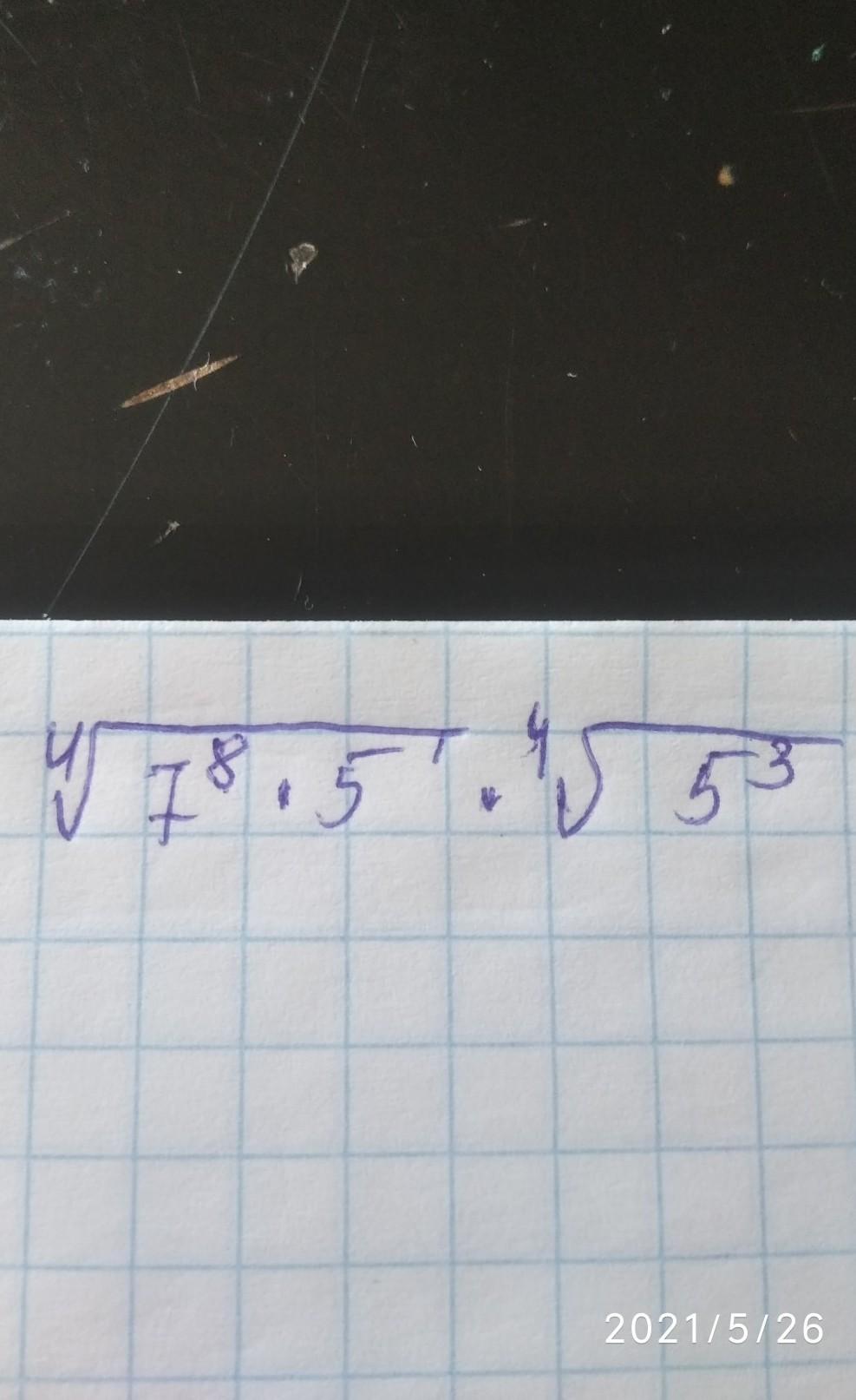 ⁴√(7^8*5)*⁴√5³=⁴√(7^8*5*5³)=⁴√(7^8*5⁴)=7²*5=49*5=245.