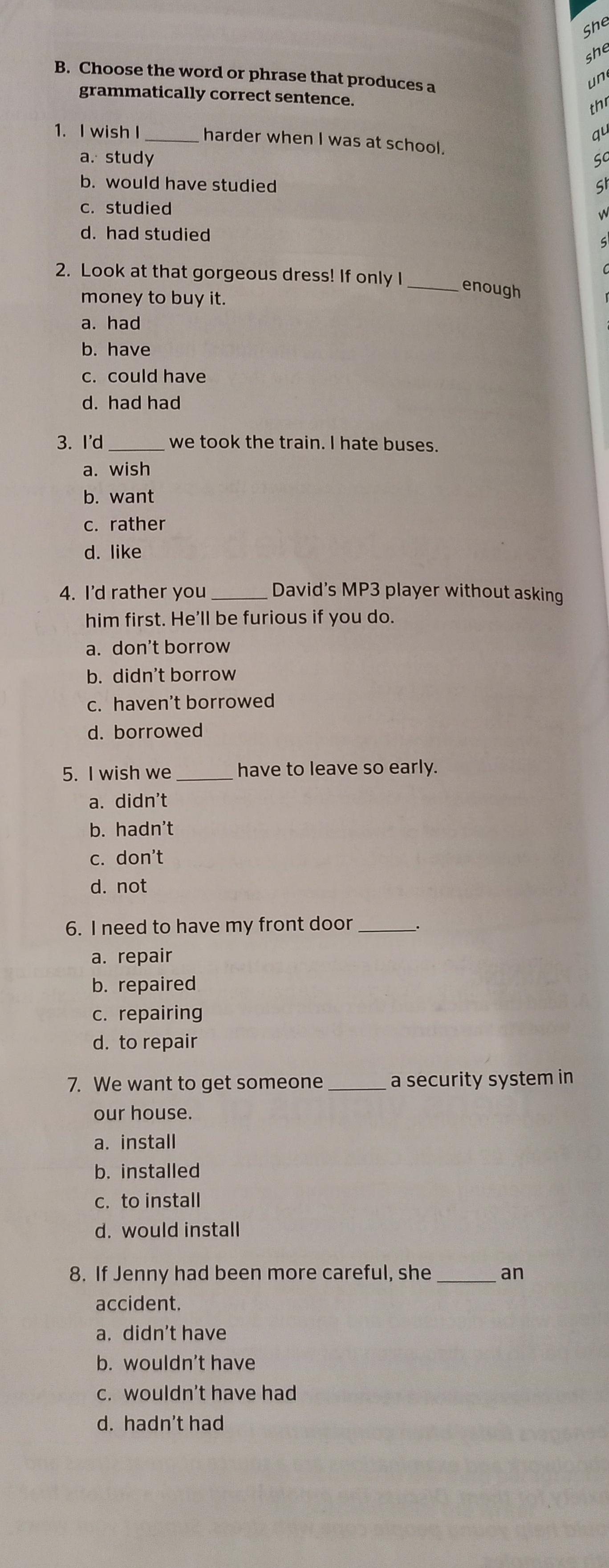 1 d 2 c 3 c 4 b 5 a 6 b 7 c 8 c