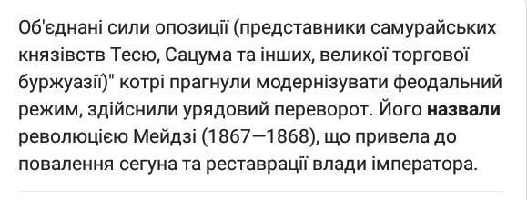 його назвали революцією Мейдзі (1867-1868),що привела до повалення сегуна та реставрації влади імператора.