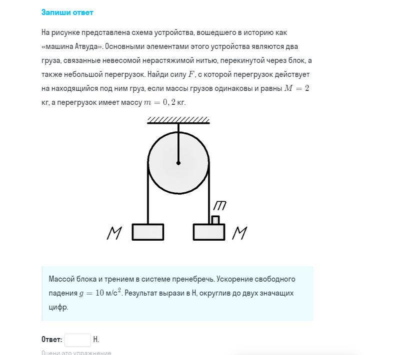 на рисунке представлена схема устройства вошедшего в историю как машина атвуда основными элементами