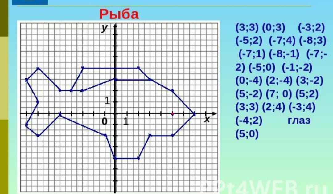 (3:3), (0:3). (-2;2), (_5; 2), (–7; 4), (-8; 3), (–7; 1). (-8; -1).(7;-2).(-5:0)