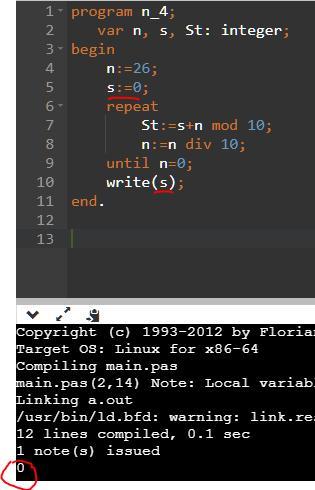 Если их исправить, то программа выдаст 0, т.к. с заданной величиной s = 0 никаких операций не производится.