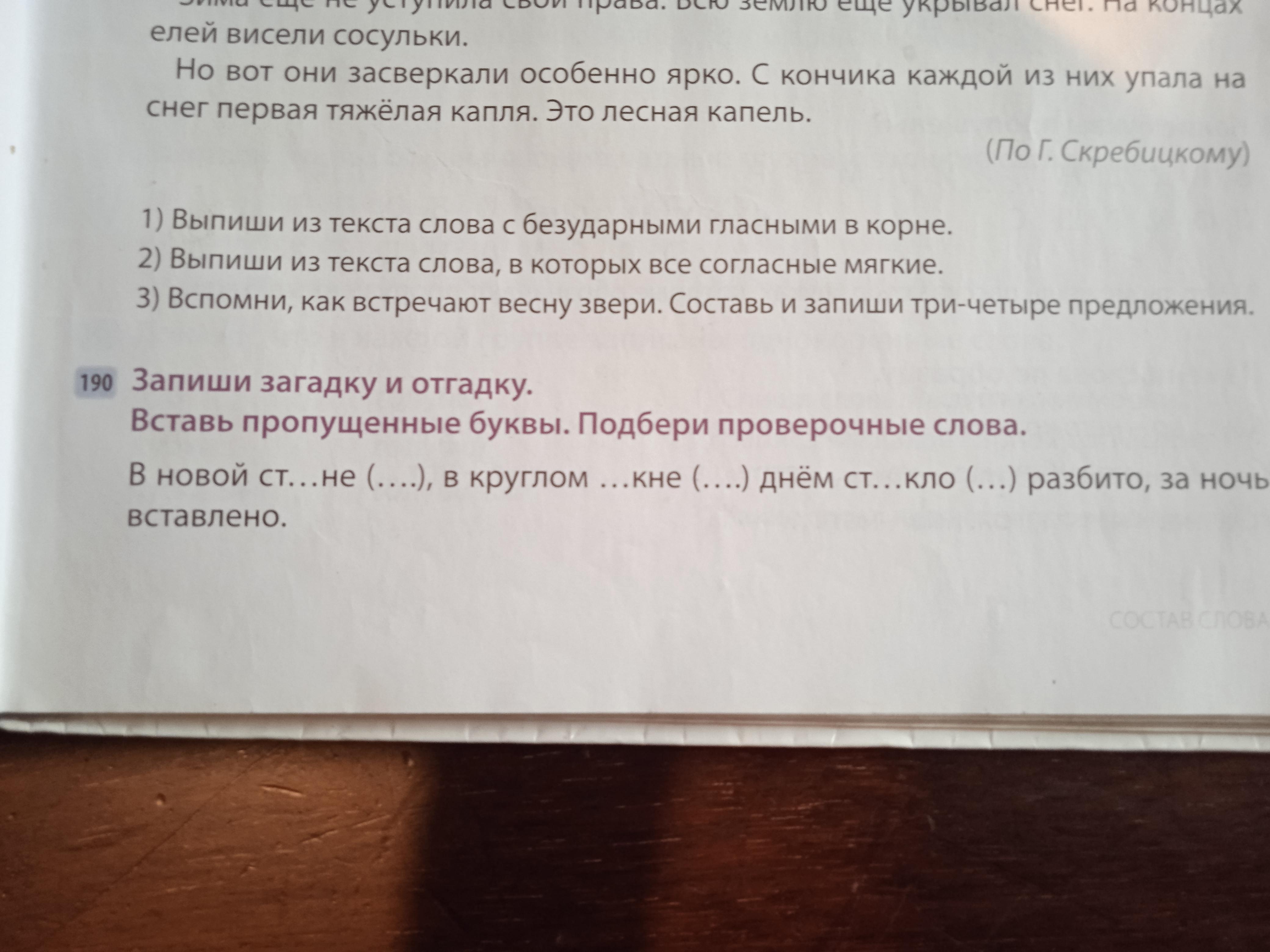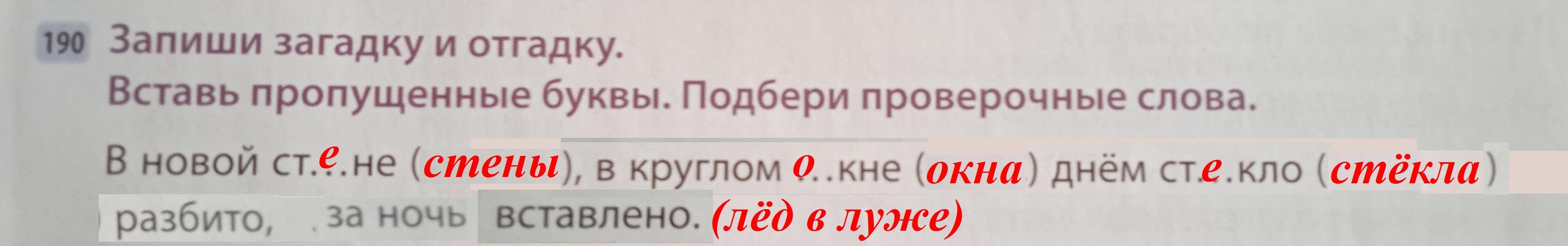 в новой стене(проверочное - стены), в круглом окне(проверочное - окна) днём стекло(проверочное - стёкла) разбито, за ночь вставлено.