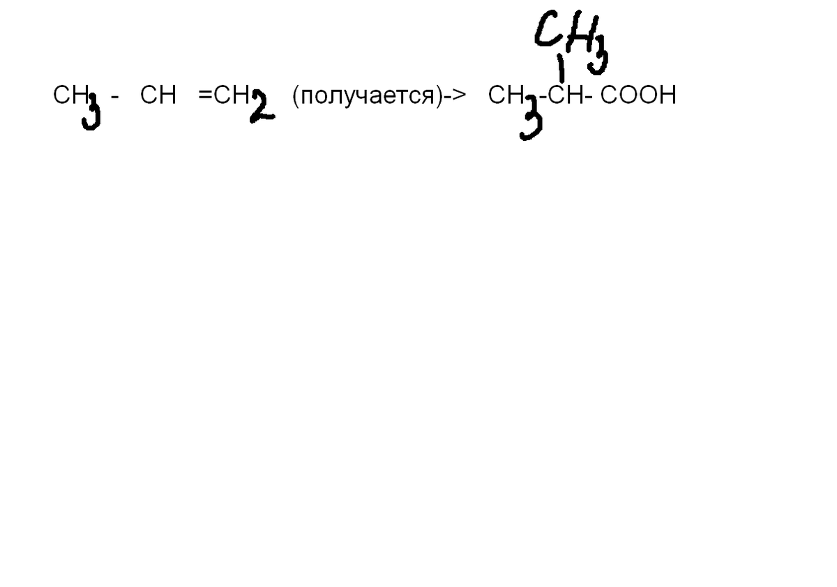 CH3-CH=CH2 + CH3COOH -> CH3CH(CH3)COOH + H2