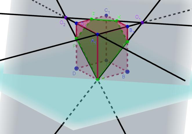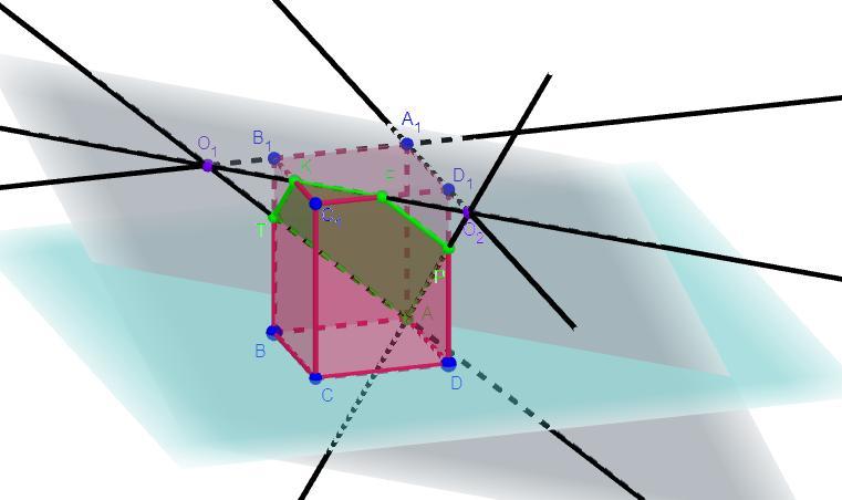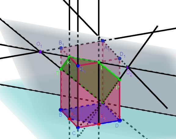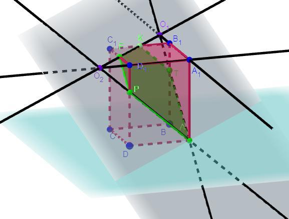 Таким образом сечением правильной четырёхугольной призмы проходящей через точки K,F,A является пятиугольник FKTAP.