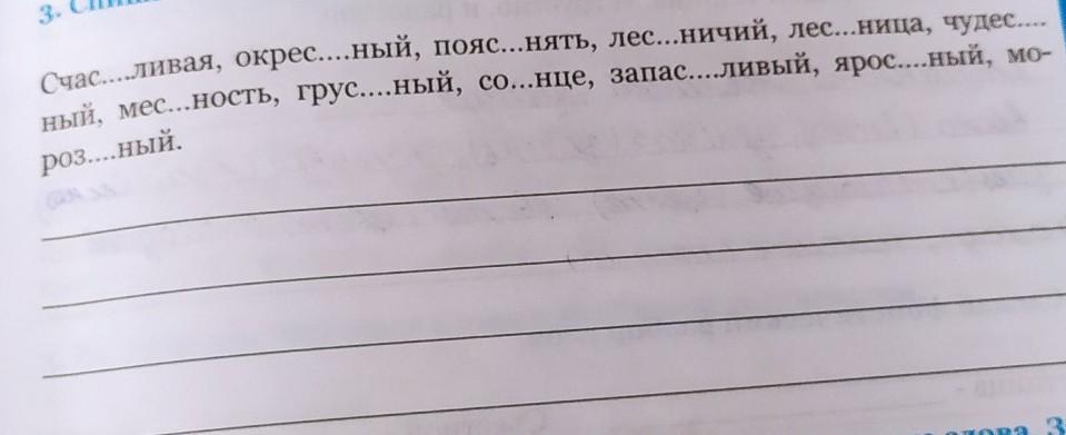 Счас. Ливая, окрес....ный, пояс...нять, лес...ничий, лес...ница, чудес...