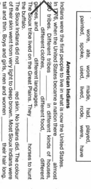 were, lived, wore, ate, played, spoke