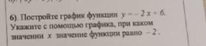 постройки график функции у=-2х+6. Укажите с помощью графика при каком значении х значение функции равно -2