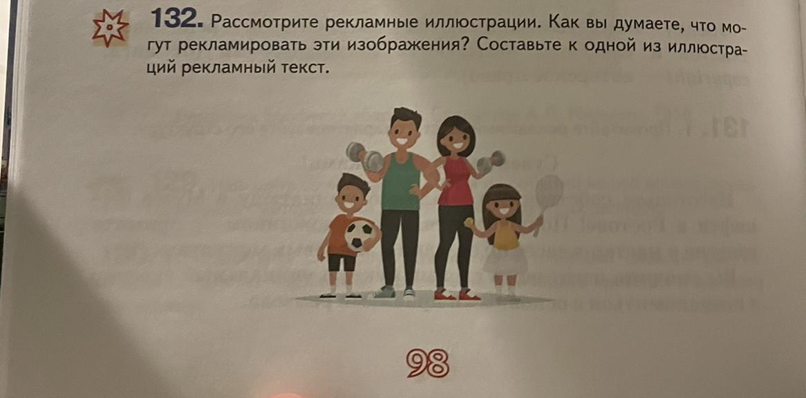 На картинке изображена спортивная семья. Возможно, эта реклама призывает людей заниматься спортом, но также возможно, что это реклама фитнес-клуба или спортивного зала. К примеру, она рекламирует недавно открывшийся фитнес-клуб. Подобная реклама могла иметь такой слоган: "Давно мечтали начать заниматься спортом, но никак не выходило? Это ваш шанс! Открылся новый фитнес-клуб в городе Волгоград! Также здесь находится солярий и бассейн. Самые опытные тренера только у нас! Первые три занятия бесплатные по адресу адресу ул. Пушкина дом Колотушкина гороод Волгоград!"