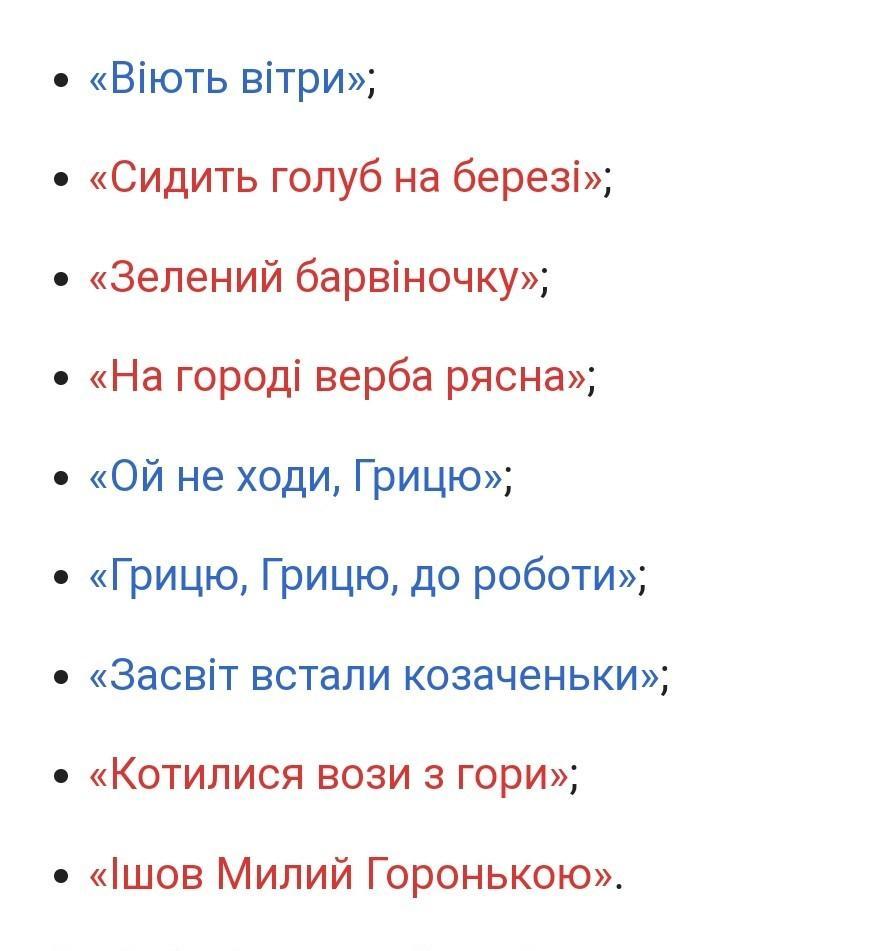 Народна пам'ять приписує поетесі авторство близько 20 пісень. Маруся Чурай є авторкою таких популярних українських пісень: