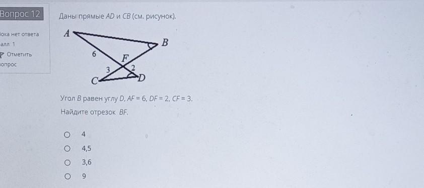 эти треугольники подобны по трём углам (ТК угол AFB=угол CFD, ТК они вертикальны. Сумма внутренних углов треугольника 180°, след-но FAB=DCF= 180° - ABF-AFB)