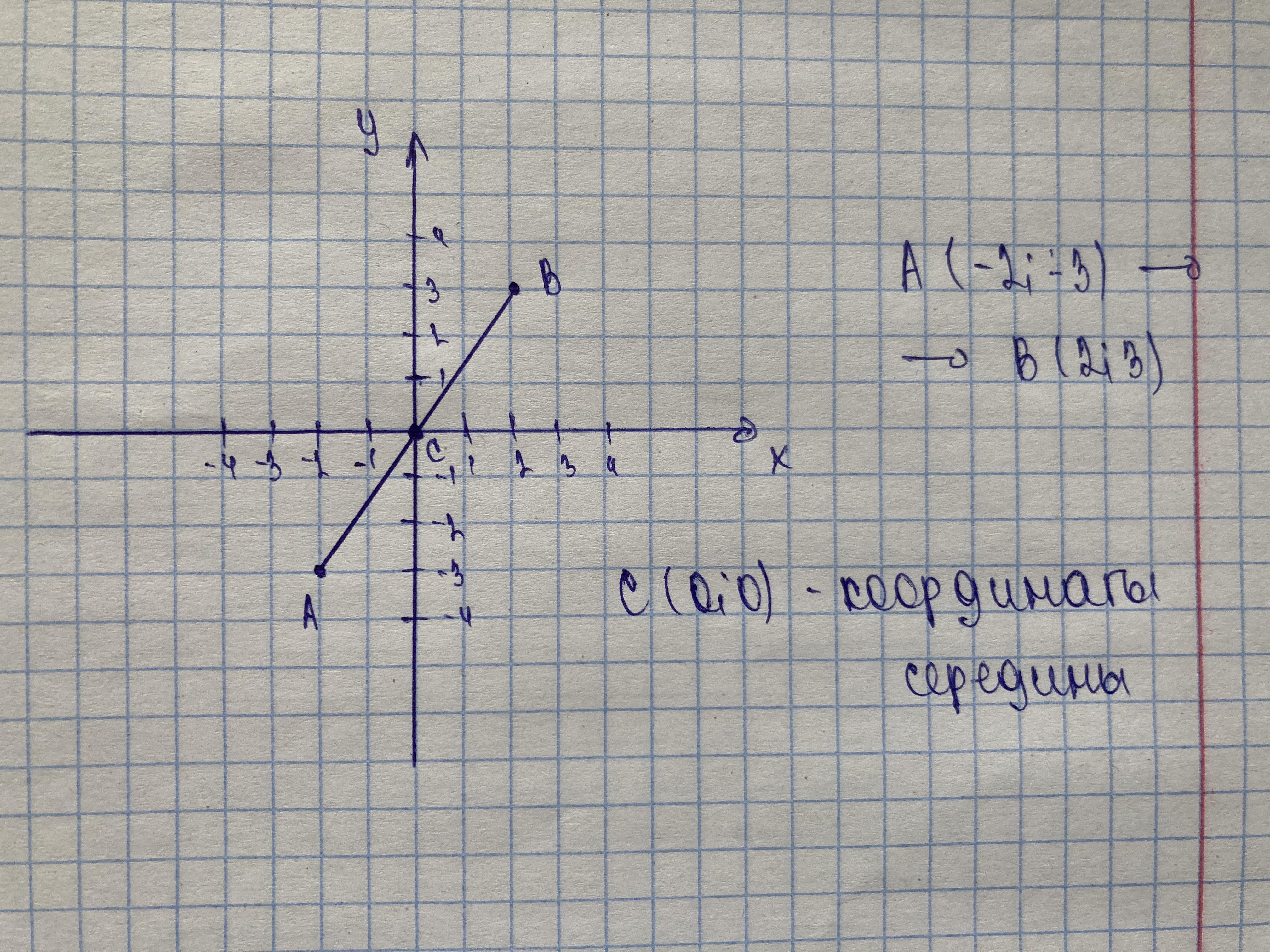 на координатной плоскости отметьте точку А(-2;-3) и точку В, координаты которой противоположны координатам точки А, Найдите координаты середины отрезка АА. СРОЧНО 60 БАЛЛОВ