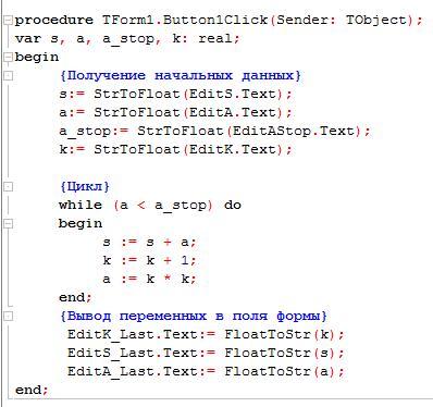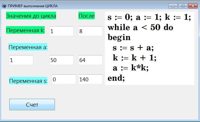 Добавлена форма, на которой вводятся начальные данные переменных и выводятся значения, полученные после нажатия на кнопку Счет.