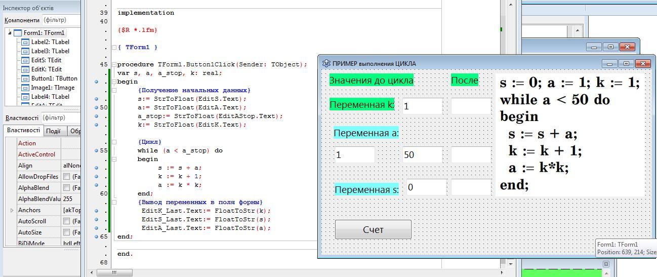 На картинках конструктор формы, Форма после выполнения и обработчик события Сlick.
