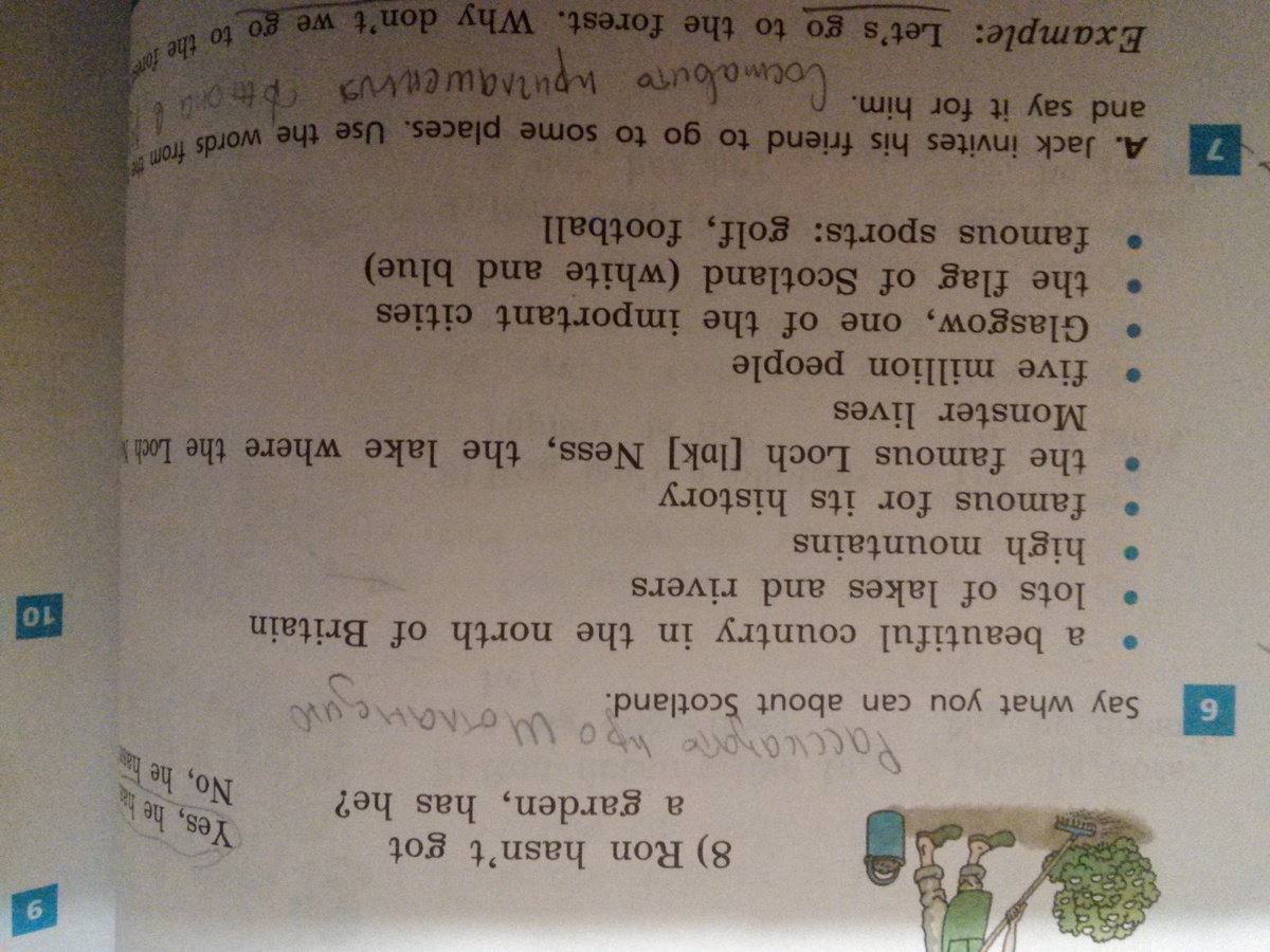 Scotland is a beautiful country in the north of Britain. There are lots of lakes and rivers. There are high mountains as well. Scotland is famous for its history. There is the famous Loch Ness, the lake where the Loch Ness Monster lives. The population of Scotland is five million people. Glasgow is one of the important cities there. The flag of Scotland is white and blue.