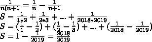 Вычислите сумму 1/(1*2)+1/(2*3)+...+1/(2018*2019)
