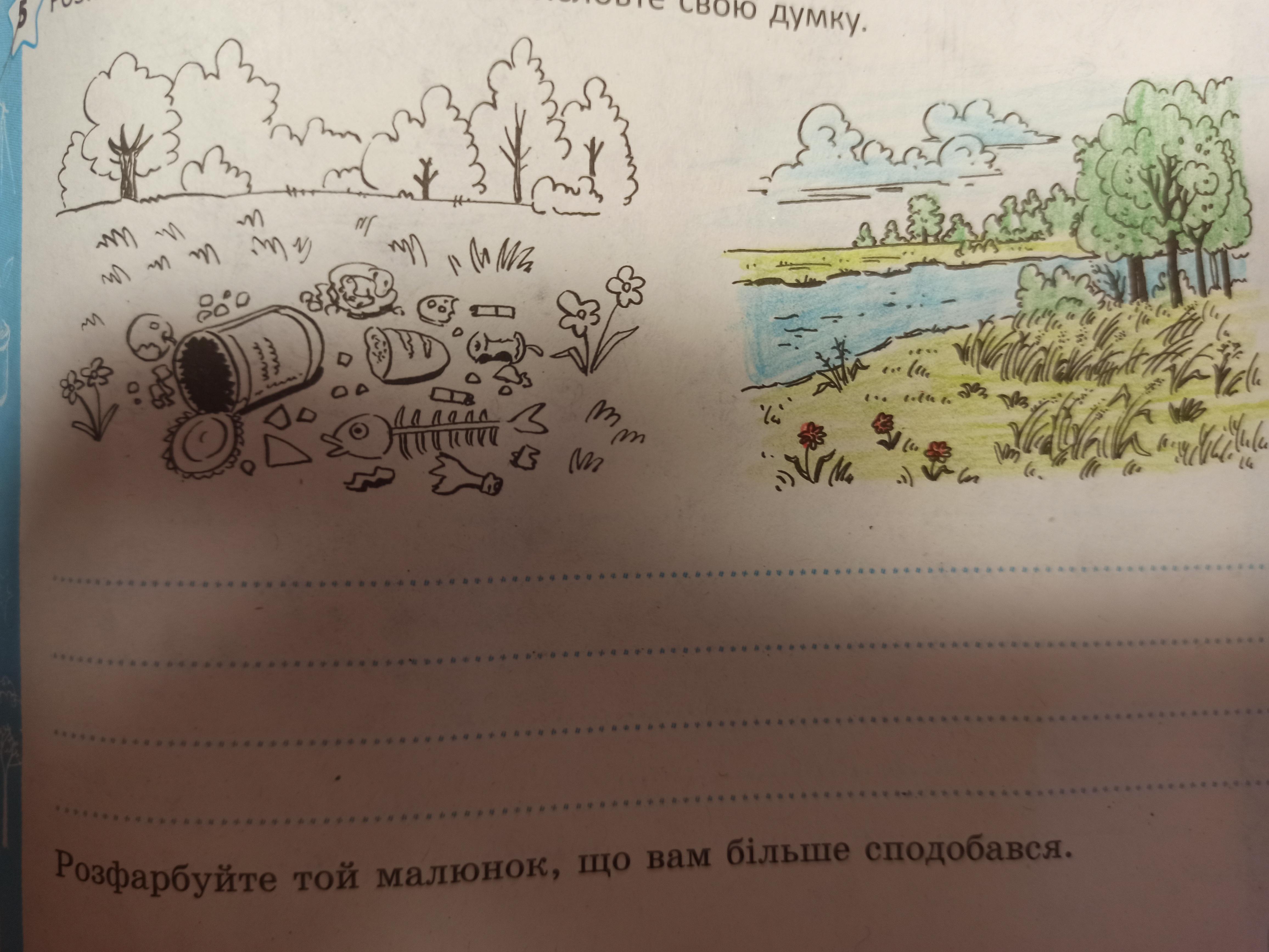 смотря на первую картину, становится очень грустно. Природа такого не заслуживает! не стоит мусорить, это вредит не только природе но и людям!