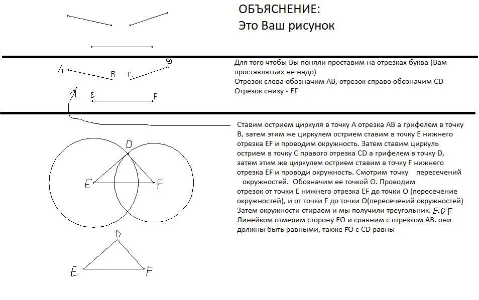 Ответ:построение треугольника по трем сторонам смотреть на картинке