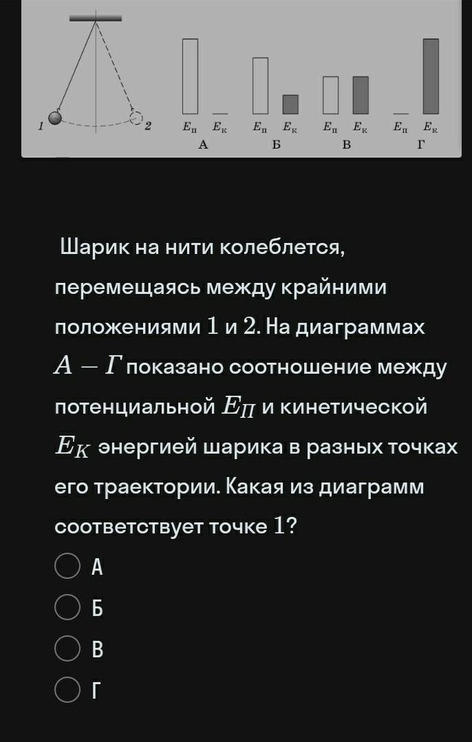 Ек в точке 1 =0 т. к. нет скорости. Ответ: А.