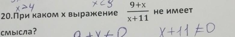 если х будет равен -11, тогда знаменатель превращается в нуль,