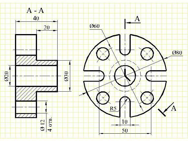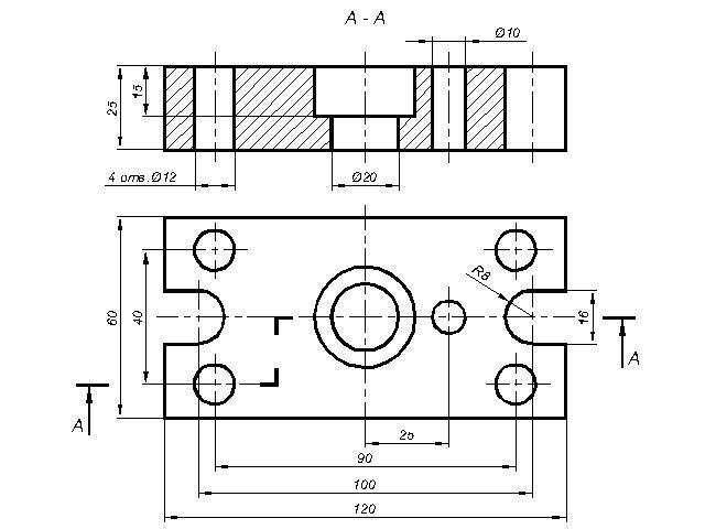Выполнить указанный разрез для обоих деталей. Проставить размеры