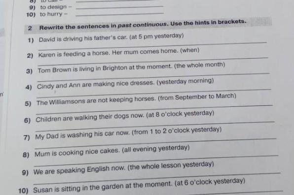 7) My Dad was washing his car from 1 to 2 o'clock yesterday.