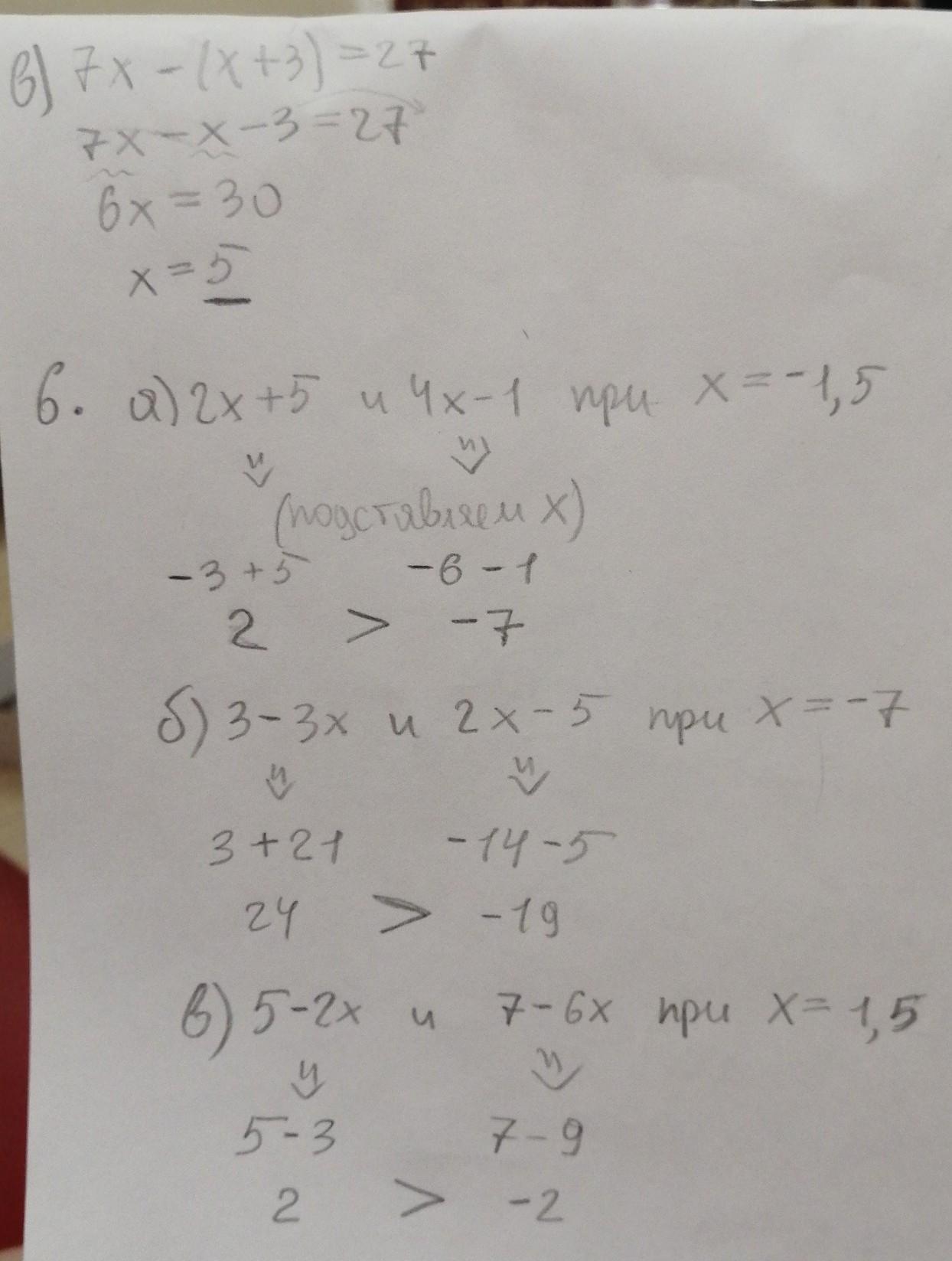 в) 5 −2х и 7 − 6х при х = 1,5.