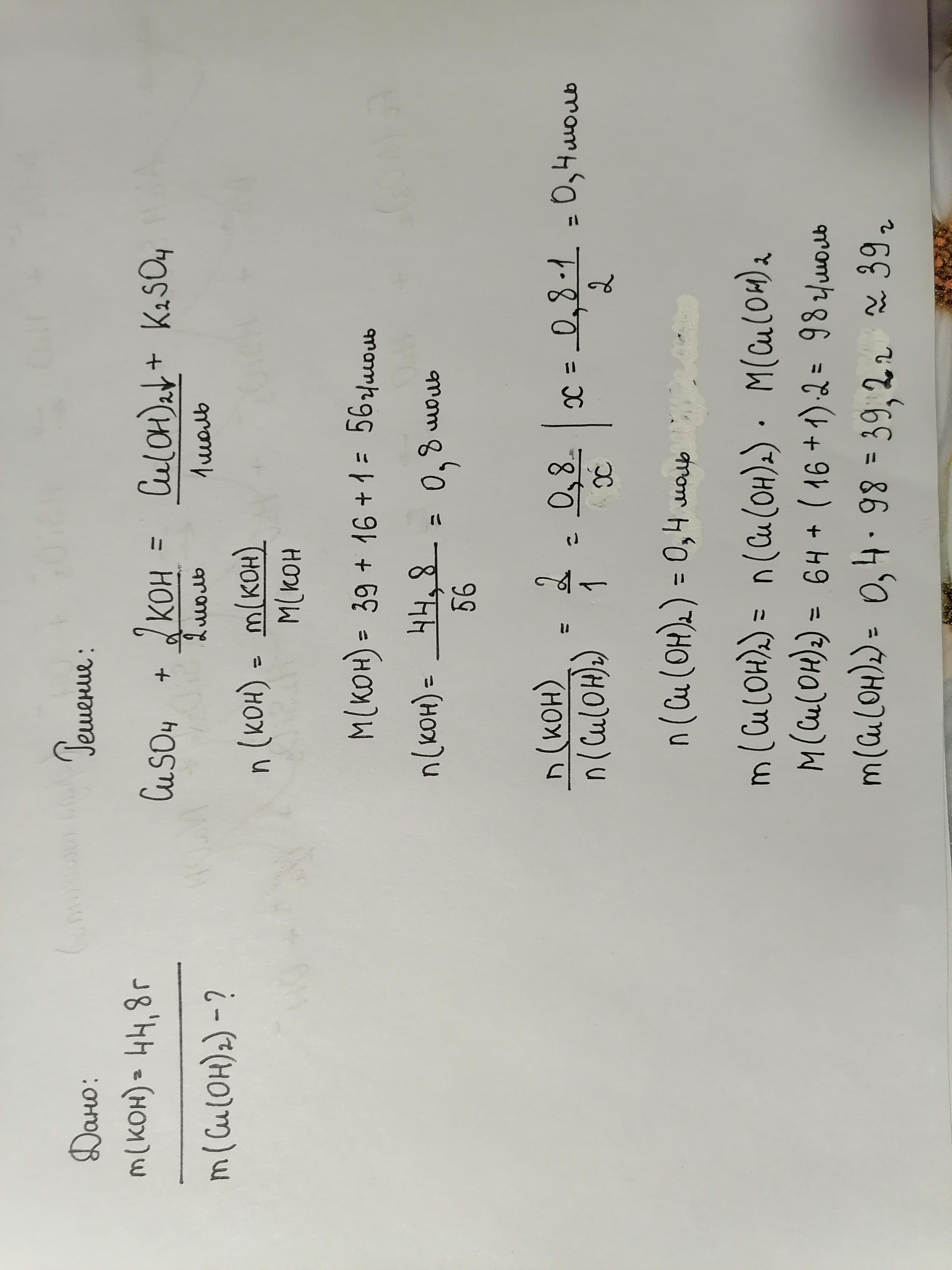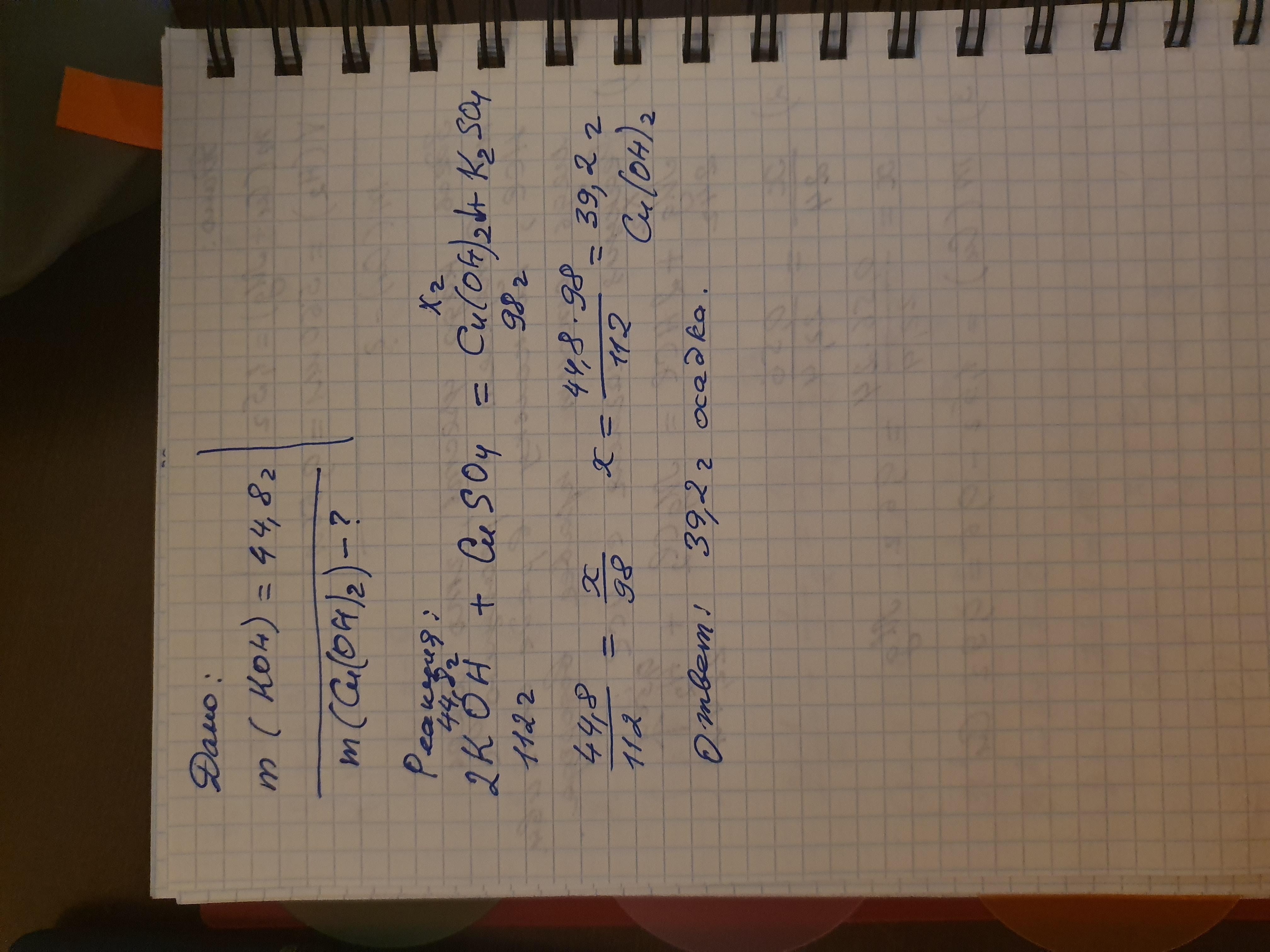 меди (II) с раствором содержащим 44,8 г гидроксида калия.