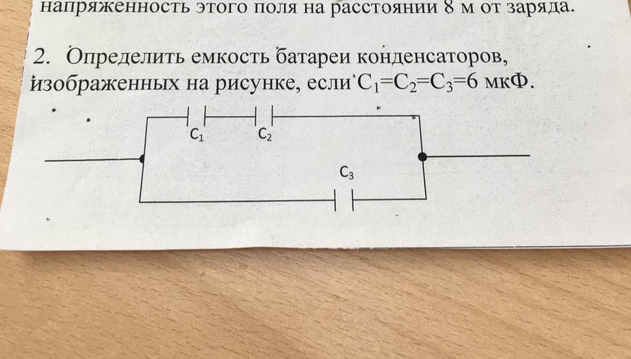 C₁₂ = C₁·C₂ / (C₁ + C₂) = 6·6 / (6 + 6) = 3 мкФ