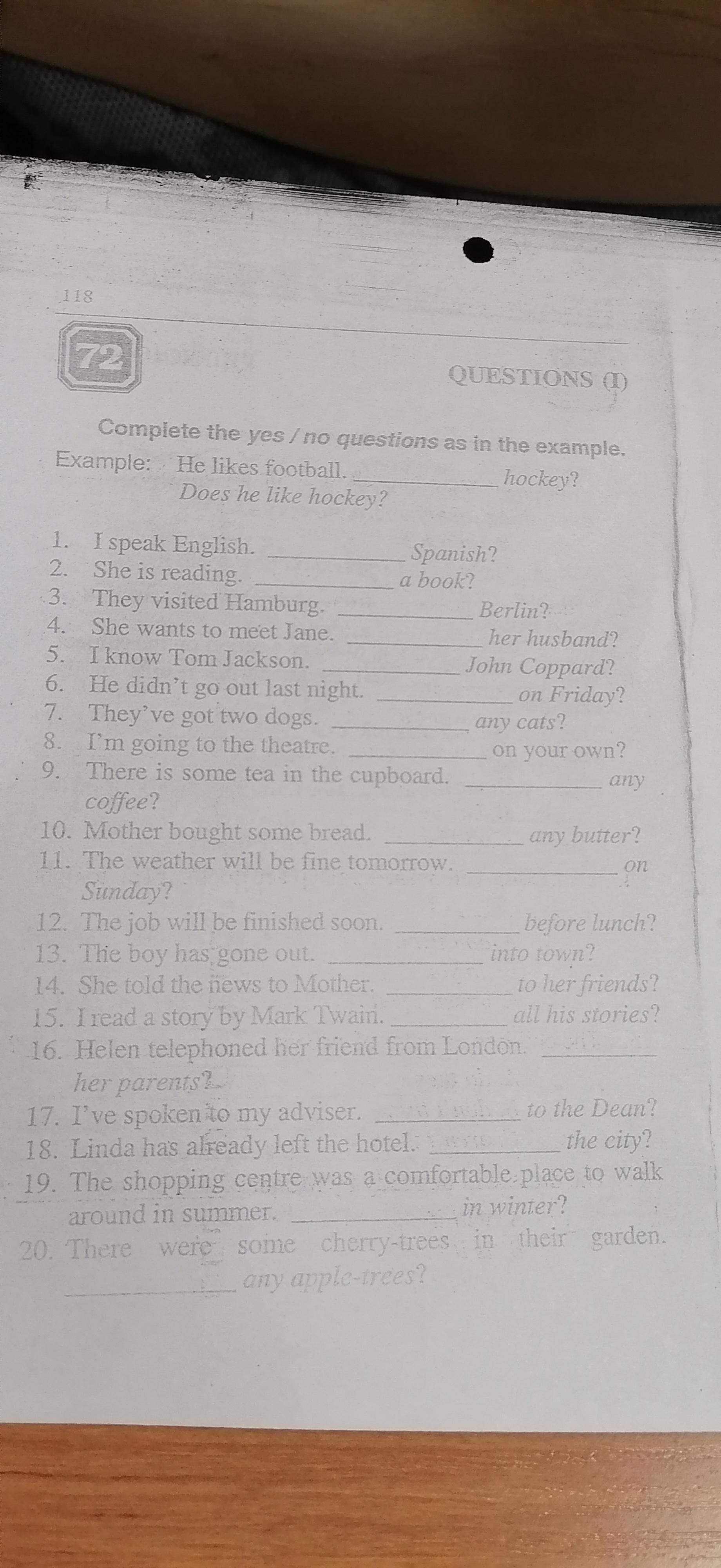 20. There were some cherry-trees in their garden. Were there any apple-trees in their garden?