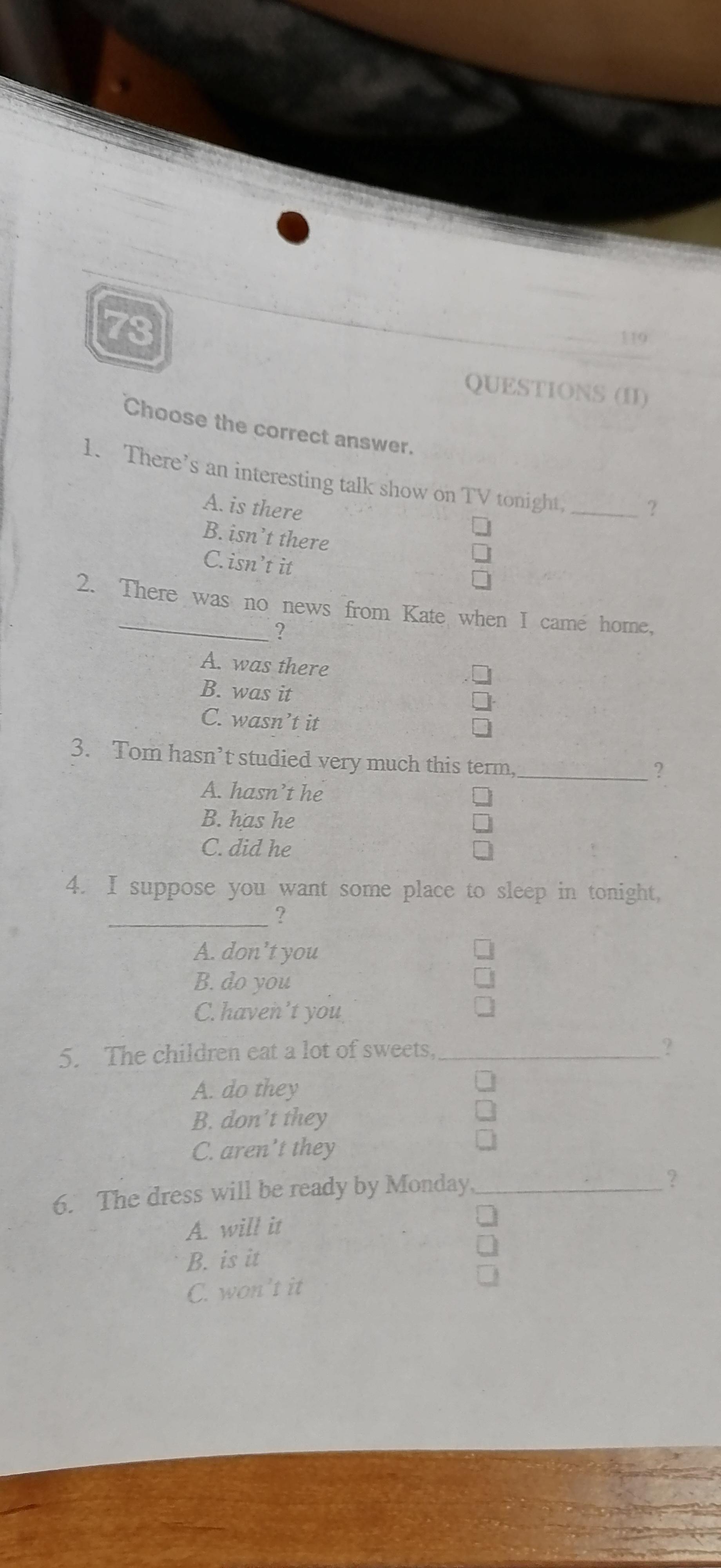 11. The weather will be fine tomorrow. Will the weather be fine on Sunday?