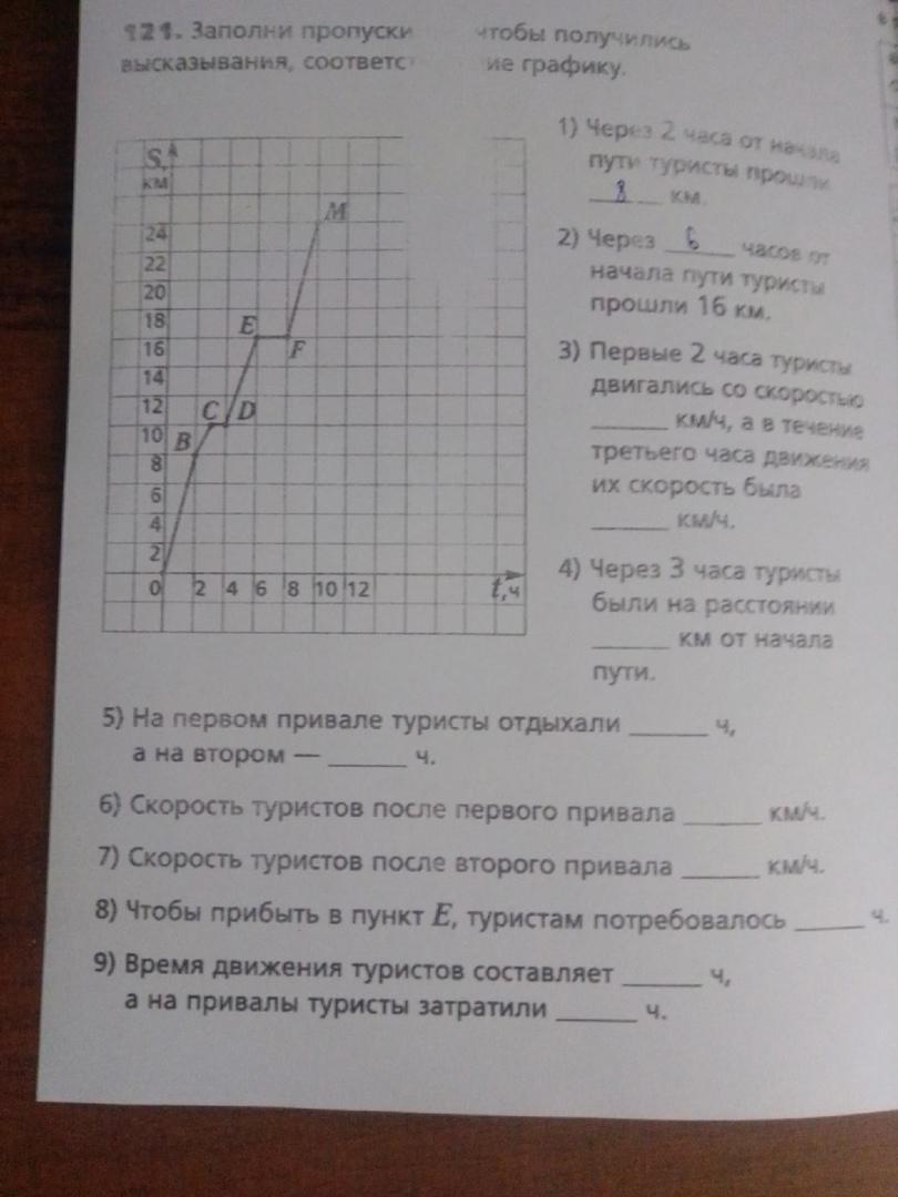 Номер №121. Заполни пропуски так, чтобы получились высказывания, соответствующие графику.